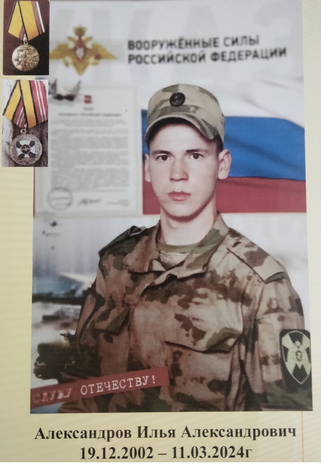 Выполняя боевое задание, верный Военной присяге, проявив стойкость и мужество Александров Илья пал смертью храбрых.